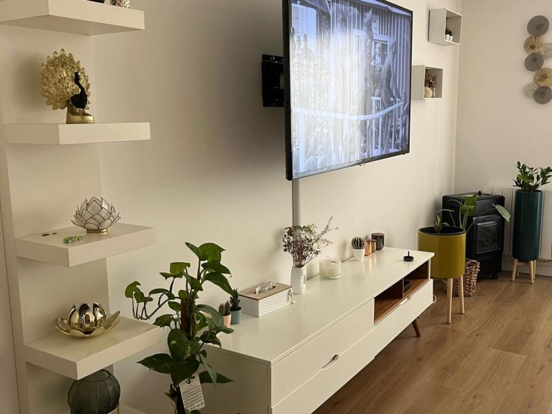 L'appartement comprend, un hall d'entrée, un grand salon-séjour donnant sur une grande terrasse, une cuisine séparée entièrement aménagée et équipée (hotte, plaque, four, lave-vaisselle), une chambre avec rangements et une salle de bain avec WC.