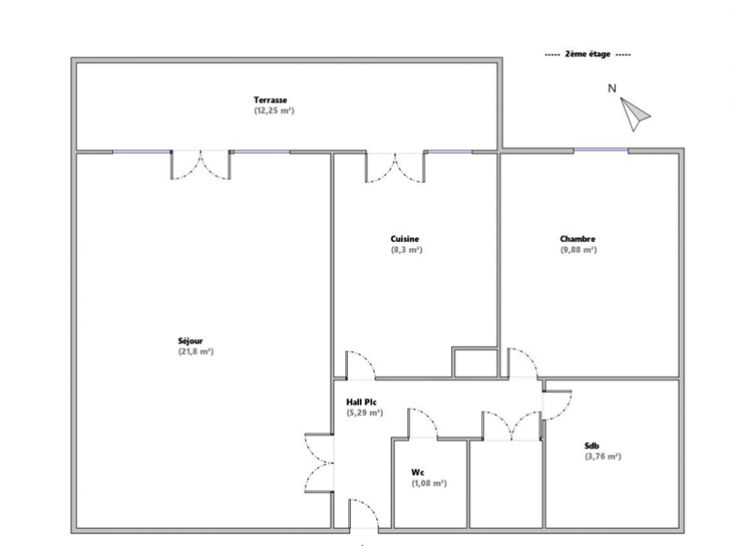 L'appartement est composé d'un hall d'entrée, un séjour agréable donnant sur une terrasse de 12,25m, une cuisine séparée, une chambre ainsi qu'une salle de bains et wc séparé.