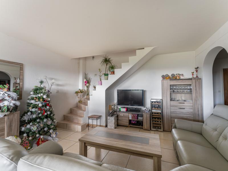 Véritable compromis entre appartement et maison de village, ce bien séduit dès l’entrée par ses volumes généreux, sa luminosité omniprésente et ses deux terrasses invitant à profiter pleinement de l’extérieur. Le séjour, chaleureux et convivial, s’ouvre naturellement sur la terrasse, tout comme la cuisine entièrement équipée, créant un espace de vie fluide et baigné de lumière.