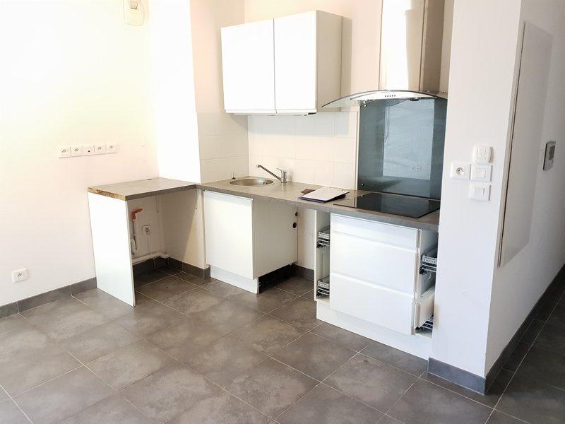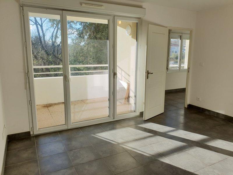 T2 non meublé Les Camoins - 62 Chemin de St Menet aux accates - Dans une résidence récente, au calme absolu, bel appartement de type 2 de 34.23m2, au 1er étage avec ascenseur, comprenant un séjour (18m2) avec cuisine équipée (rangements + hotte + plaques de cuisson), une chambre, une salle d'eau/ wc, une terrasse ( 5m2). Garage double en sous-sol. ,Proximité commerces (Centre Commercial de la Valentine) et accès autoroutes.