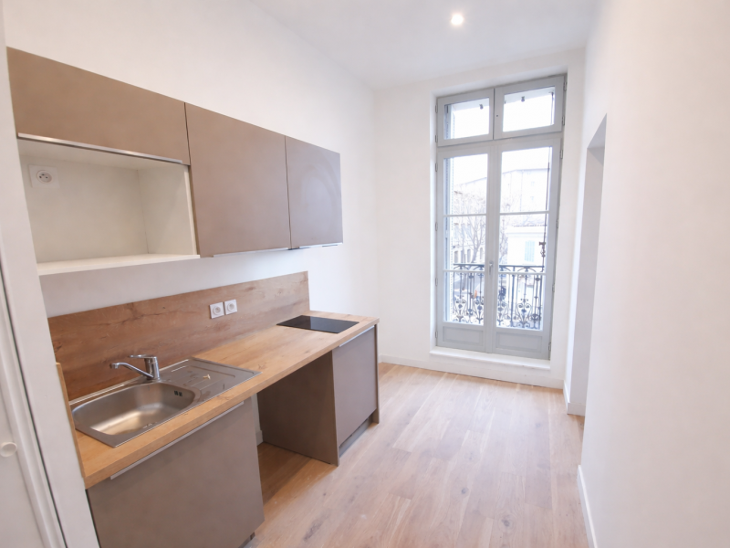 Dans un immeuble de style haussmannien au 2 éme étage, ce bien se compose d’une entrée, un séjour avec cuisine semi séparée toute équipée et meublée de plaques électrique, frigo et hotte, une chambre avec placard aménagé, le tout ouvrant sur un balcon filant de 4.70 m2, une salle de bains avec wc séparé.