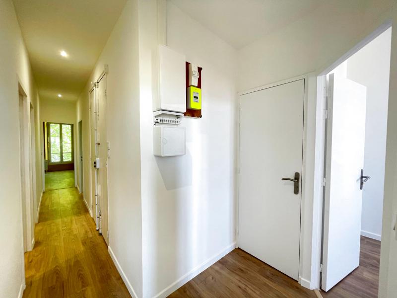Il se compose d’un salon avec cuisine ouverte, meublée et équipée (meubles de rangement, plaque, hotte, four), d’un couloir desservant trois chambres dont deux avec une jolie vue dégagée sur le quartier Longchamp et une chambre côté boulevard ainsi qu'une salle d’eau et des toilettes séparées.