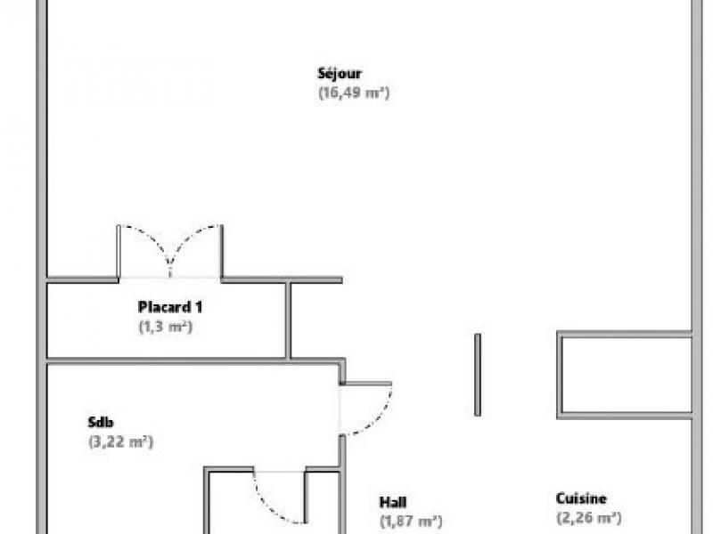 Situé au 1er étage, il se compose d'une entrée avec une kitchenette, une pièce de vie avec grands placards, et une salle d'eau avec W.C.